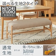天然木とファブリック素材を組み合わせたダイニングベンチは、ナチュラルテイストなインテリアにピッタリ。