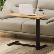 ベッドやソファに差し込む様にして使えるサイドテーブルは、スマートなフォルムで圧迫感が抑えられるだけで無く、手元に天板が近づけられるので楽な姿勢でテーブルが使用できます。