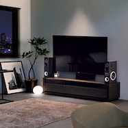 ソファに合わせてコーディネートする、脚付きで高さのあるテレビ台なら、抜け感のある軽やかなスタイルが叶えられるだけでなく、床面の掃除もしやすくなります。
